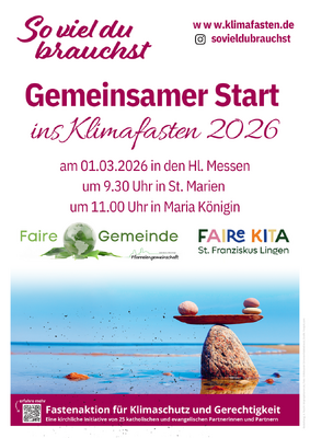 Unter dem Motto "So viel du brauchst" lädt der Ausschuss Faire Gemeinde herzlich zum gemeinsamen Start ins Klimafasten 2026 ein.