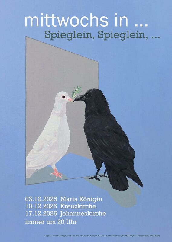 Unter dem Motto "Spieglein, Spieglein, …" laden die Lingener Kirchengemeinden herzlich zur diesjährigen Adventsreihe "mittwochs in …" ein. Erleben Sie drei besondere Abende - jeweils mittwochs um 20:00 Uhr: