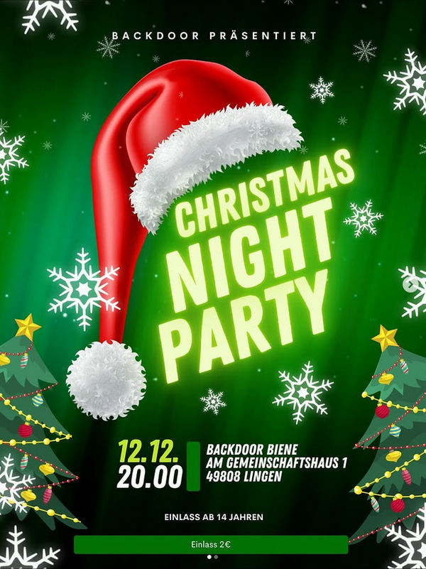 Freut euch auf eine geile Weihnachtsparty im Backdoor am 12.12 mit leckerem Glühwein und anderen tollen Getränken