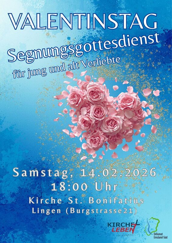 Herzliche Einladung an alle jung und alt Verliebte zu dieser Segensfeier in St. Bonifatius Lingen. Alle sind willkommen!