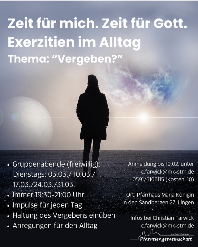 Die Pfarreiengemeinschaft Maria-Königin-Lingen & St.-Marien-Biene lädt ein, Vergebung im eigenen Leben einzuüben - mit täglichen Impulsen aus der Mappe "Vergeben?" (Bistum Innsbruck).